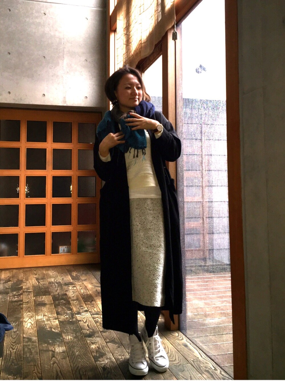 ディナーを食べにいきます。 おなかいっぱい食べたいから、ウエストはゴム!! コンバースシューズ、かなり活躍しそう!