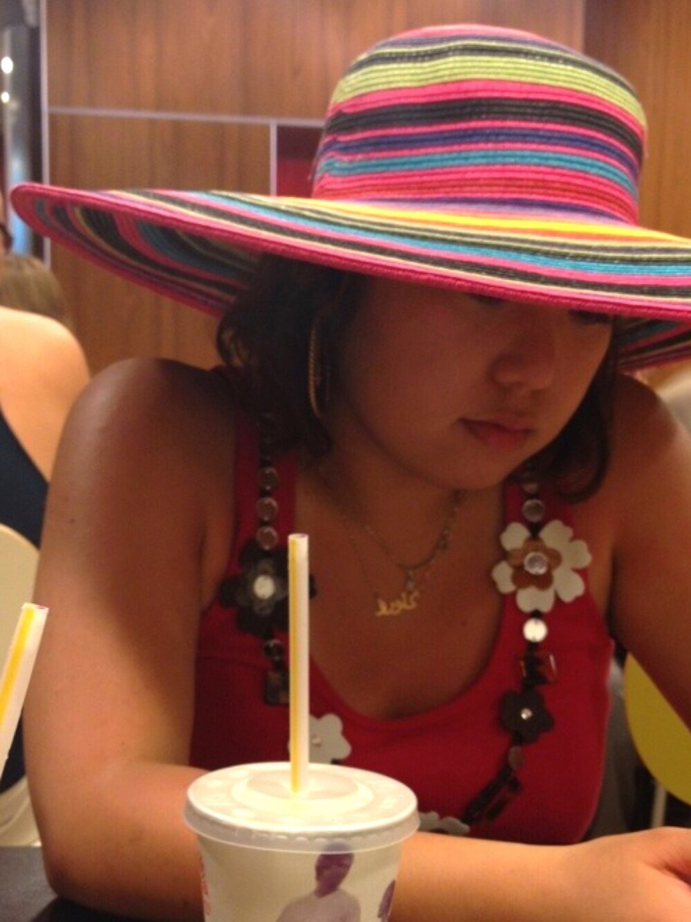 リゾート服@マルタ共和国 まだ日本未上陸だったころの、トリーバーチのフラワーとミラーモチーフ付タンクトップ🌸と、 マルタの路上で一目惚れしたマルチカラーの麦わら帽子。