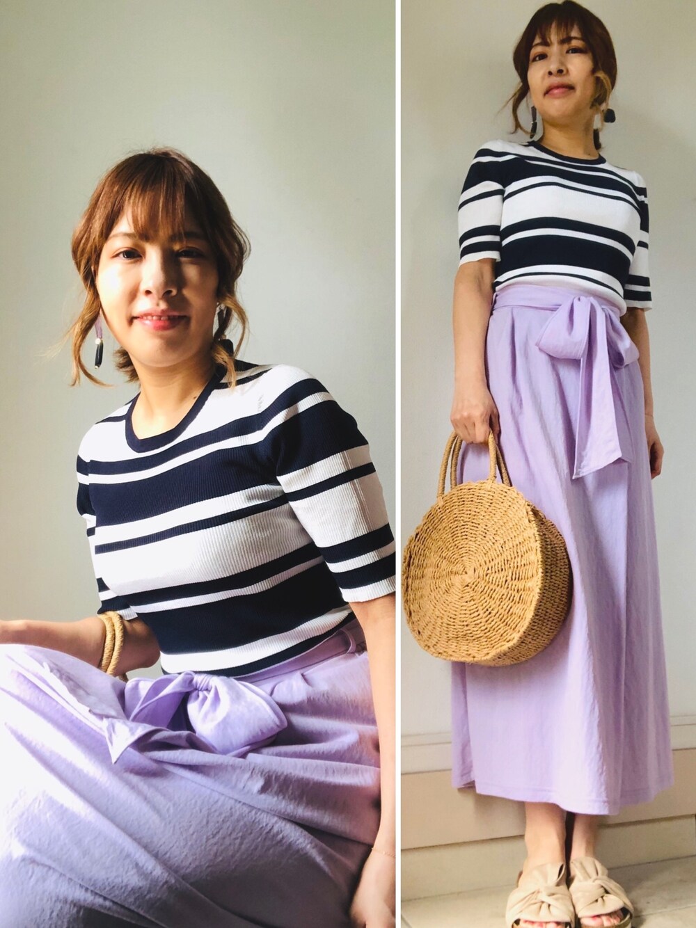 ⭐️KAoRI⭐️のニット/セーター「ランダムボーダーハーフスリーブライトニット」を使ったコーディネート