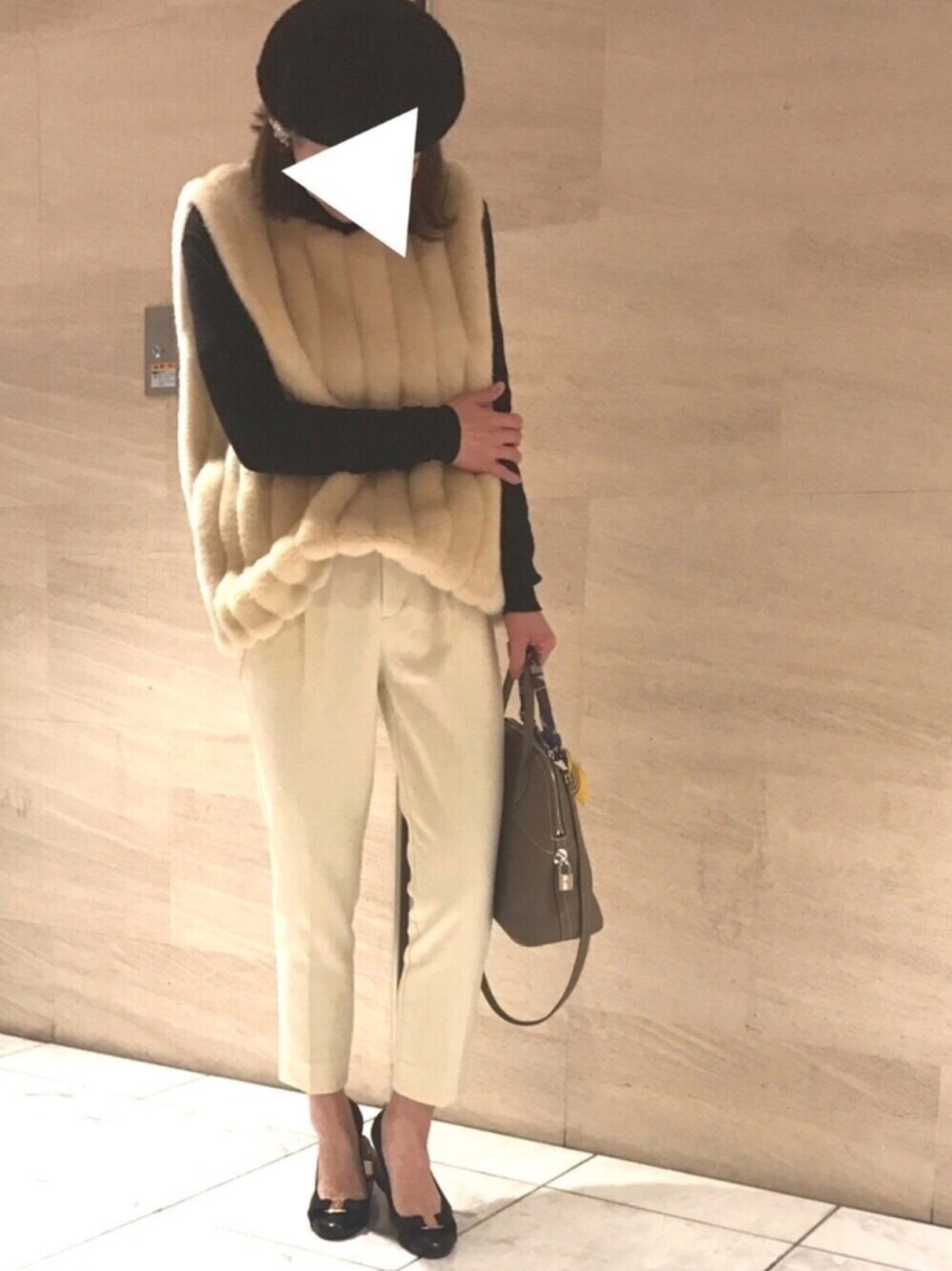 どうしてもファーベストが着たくて極暖、ニット、カーディガンinしてみました笑٩( ᐛ )و お外ではストール巻き巻き♡ ファーベストは前上がりにしたくて裏地を縫いました♪