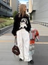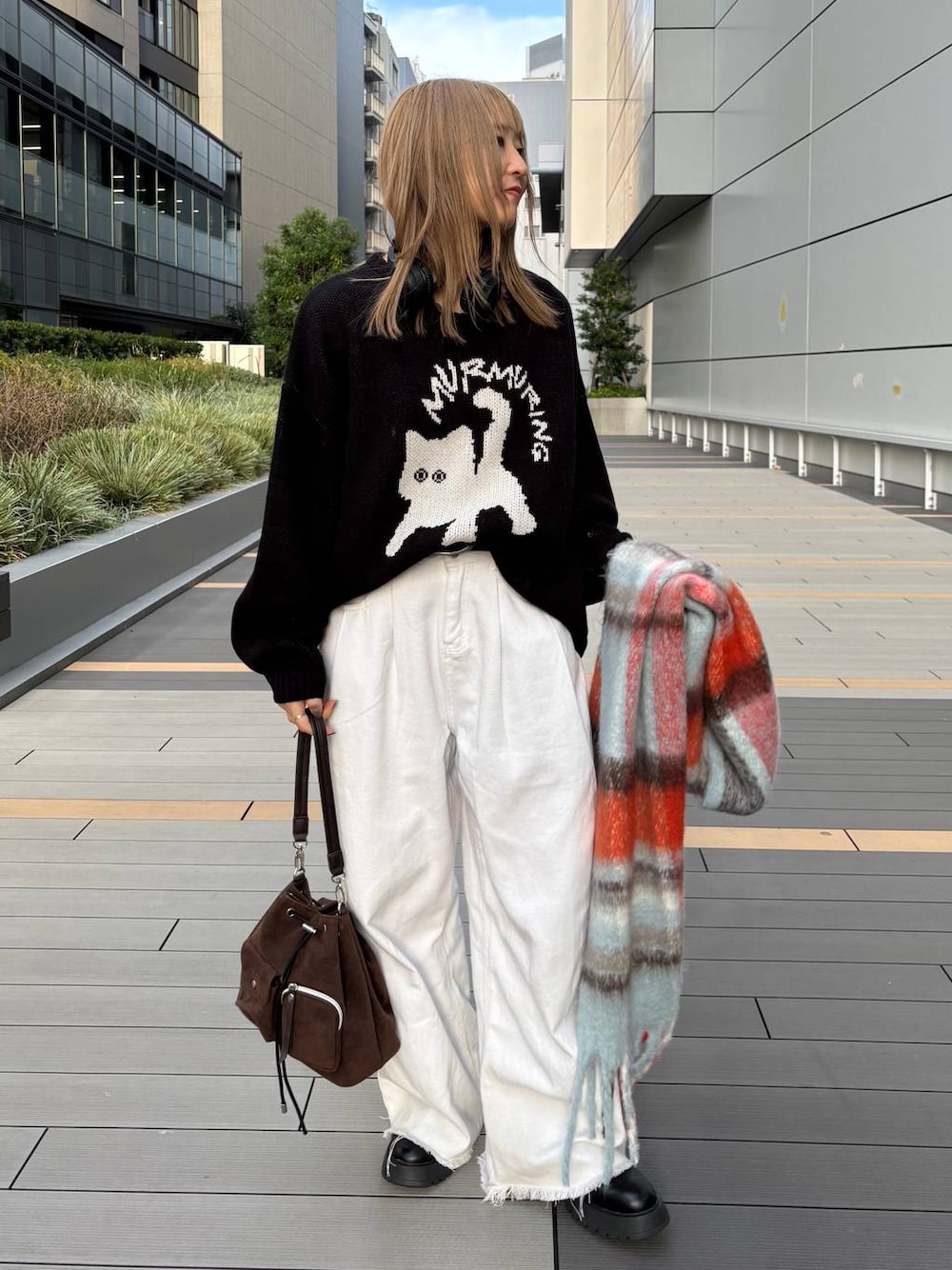 ⭐各アイテムのおすすめポイント  ̄ ̄ ̄ ̄ ̄ ̄ ̄ ̄ ̄ ̄ ̄ ̄ ̄ ̄ ̄ ̄ ̄ 【トップス】 ネコのゆるいイラストがとにかく可愛い! メンズアイテムですが女性が着てもオーバーサイズな着こなしが楽しめます☺️ 首周りも詰まり過ぎていないので、シャツの重ね着も楽しめますよ! アウターを羽織っても、ネコちゃんがのぞく遊び心のあるアイテムです◎ チクチク感はありませんでした! 柔らかくくたっとした質感のニットです🙂↕️ 【マフラー】 軽くふわっと巻いただけでもボリューム感があって 冬ならではのコーデに仕上げてくれます! 大判で軽量なので、肩がけや膝にかけるのも🙆🏻♀️ カラーの配色が可愛いので暗くなりがちな冬のコーデのアクセントになりますよー