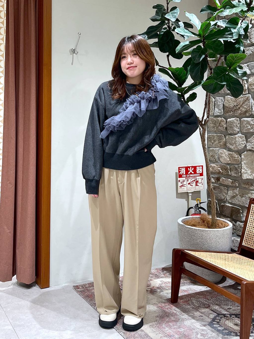 カレン(BAYFLOW ららぽーと名古屋みなとアクルス)の付け襟「ラッフルストール付け襟」を使ったコーディネート