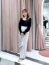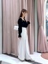 【トップス F】 シアーの素材感が 大人かわいい! 袖が上品見えして 綺麗系コーデにもおすすめ 大人っぽくも 華やかな雰囲気でも 着回し抜群トップスです! 【ボトムス 着用サイズ38】 着回し抜群! 一枚持ってるだけで綺麗めコーデが 完成する! ウエストがゴムになっているので 履きやすさバツグンです!