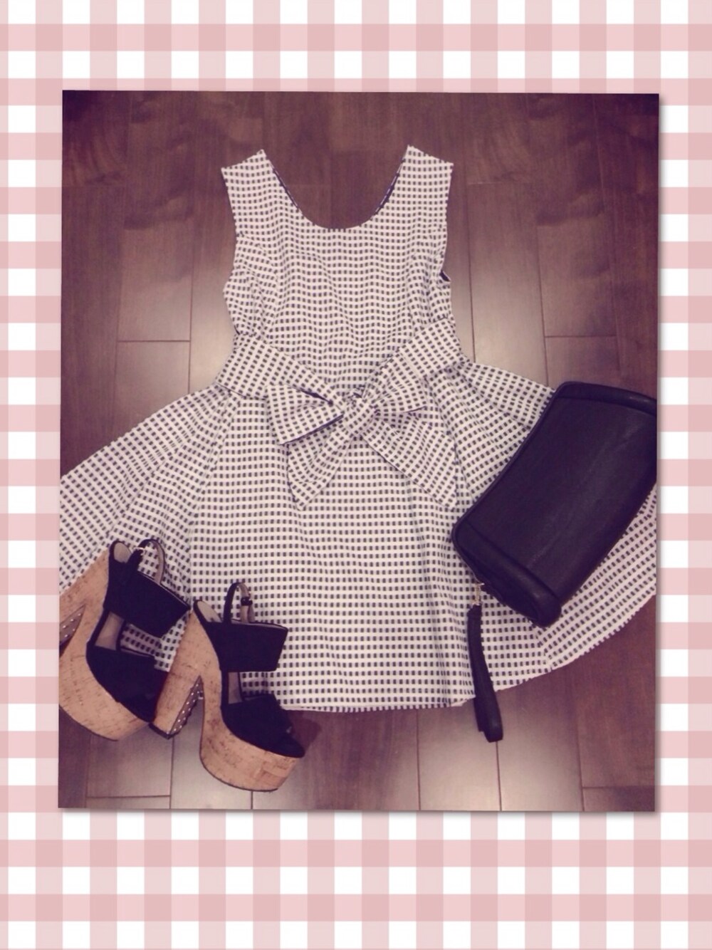前リボンが可愛いワンピース。ネイビーもまた好きな色!!