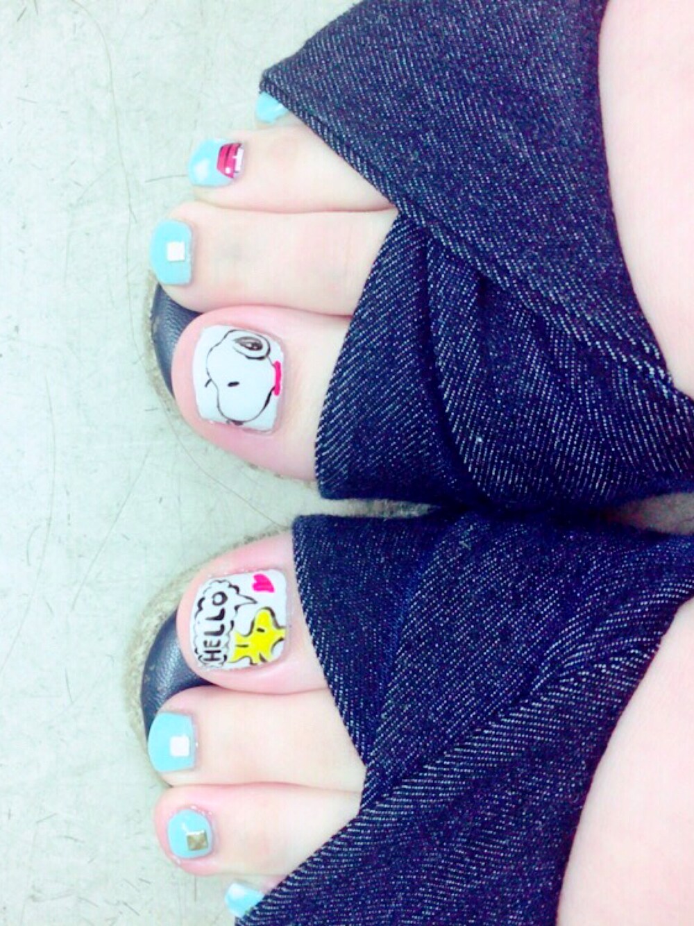 久しぶりの投稿です。サボり過ぎてました。 スヌーピーネイルを自慢。
