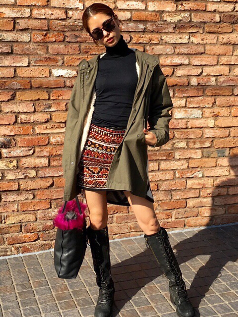 今日の私服🐻 jurianojurrieのモッズコート、バックスタイルがオルテガ柄が可愛いの❤️そしてなによりあったかい💭💭 スカートも民族っぽいのを合わせてみたよ!!やっぱりタートルネックloverな私です🤗
