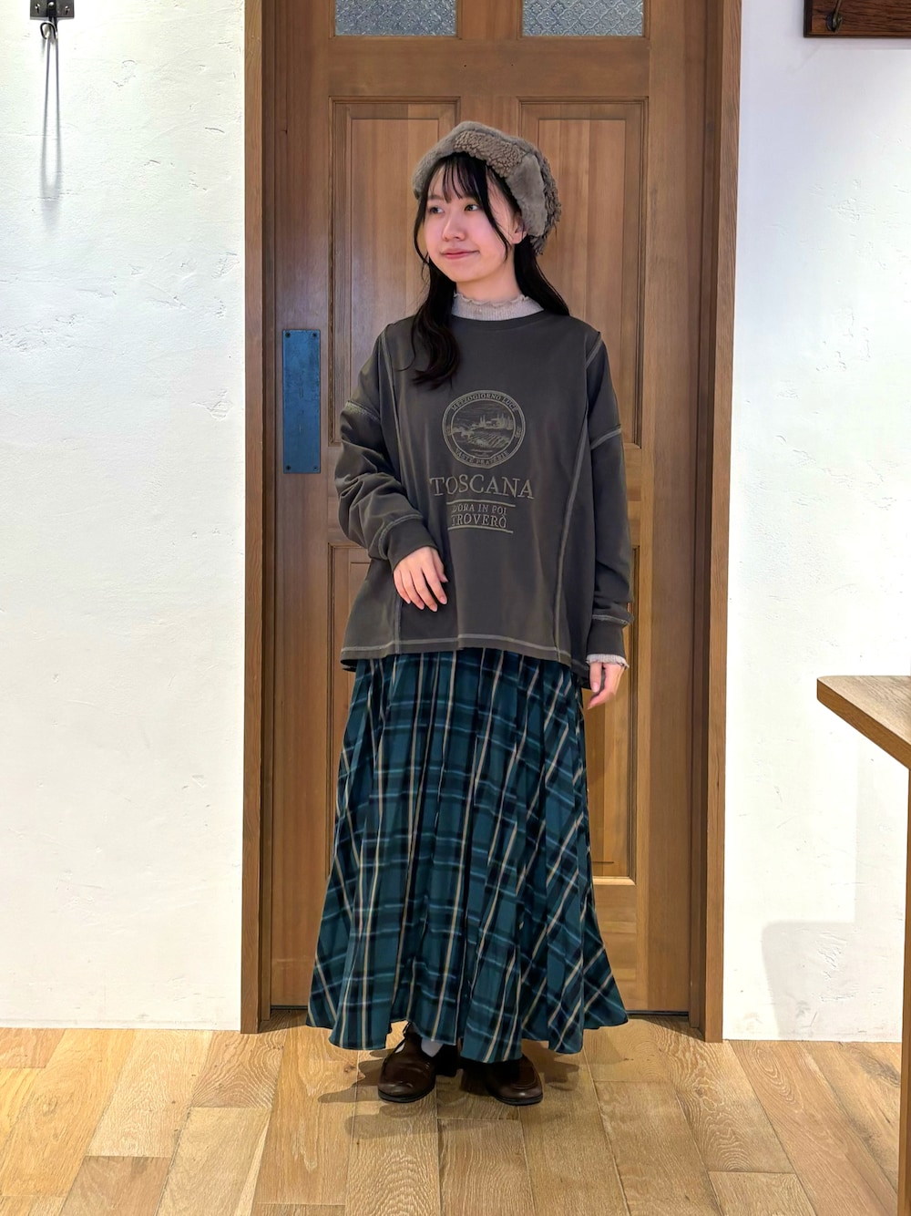 ご覧いただきありがとうございます🥟 遅くなりましたが、先月の出勤コーデです𓃦 Tシャツのロゴは一部刺繍になっており 色合いも落ち着いていてお気に入りです◎ スカートは帯電防止機能付きなので ぱちぱちせず履き心地抜群です⚘⠜ ------- 11/9〜ノベルティフェアを開催中🦌 ❄️winter Fair ❄️ ・ ¥9,000(税込)以上お買上げの方 『レザー素材のサコッシュ』プレゼント! ・ ¥6,000(税込)以上お買上げの方 『陶器製の小物入れ&クロシェのセット』プレゼント! 残りわずかになっておりますので お早めにチェックしてみてください𖥧𖧧 ˒˒ ※ノベルティはなくなり次第終了です。