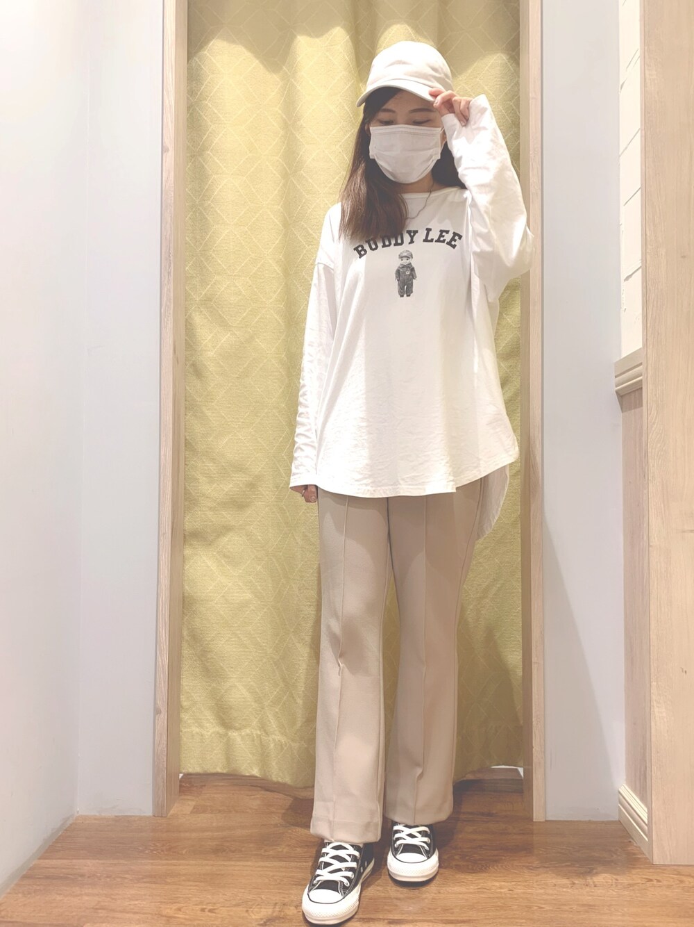 LeeとEarthコラボしたのプルオーバーを着用! いまの季節にピッタリ♡♡ パンツもセンターラインがあるので、あしが細く見える効果があります!