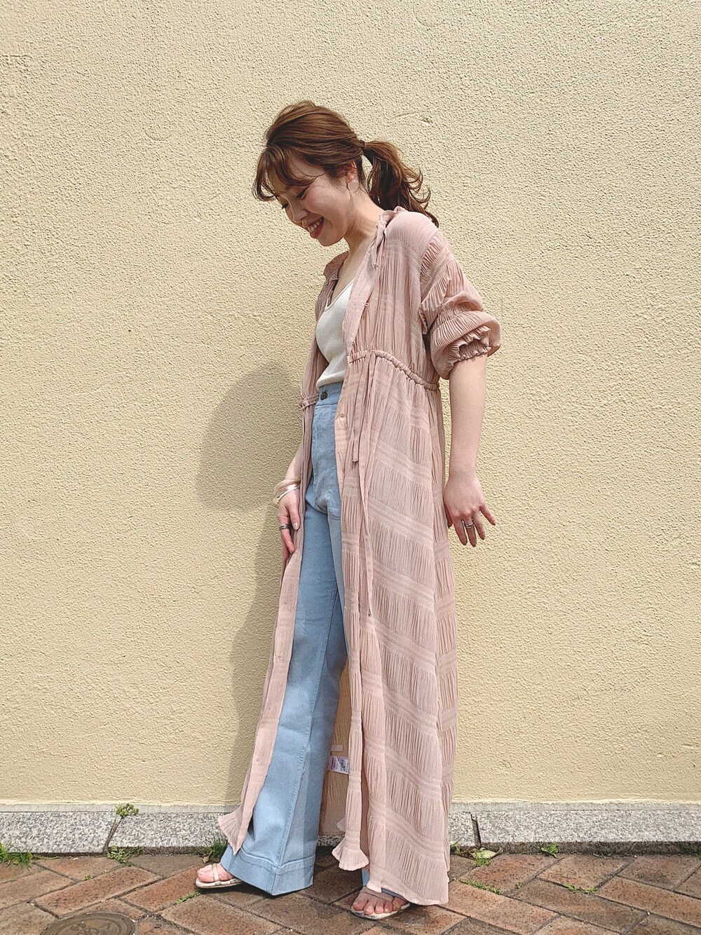 ロングワンピースをガウンstyleで♡ カジュアルだけど、 女性らしいバランスに仕上げました❤︎