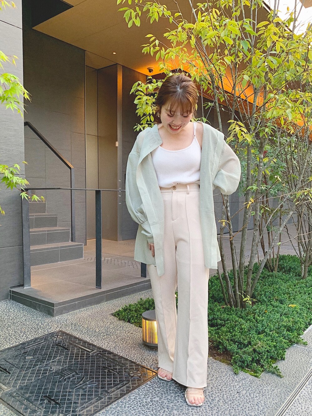 今年のトレンドコーデ!!! シアーシャツ×カラーパンツで、 シンプルですが大人コーデに❤︎