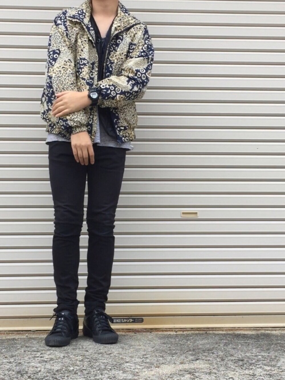 karsのナイロンジャケット「レオパード柄(青×ベージュ)」を使ったコーディネート