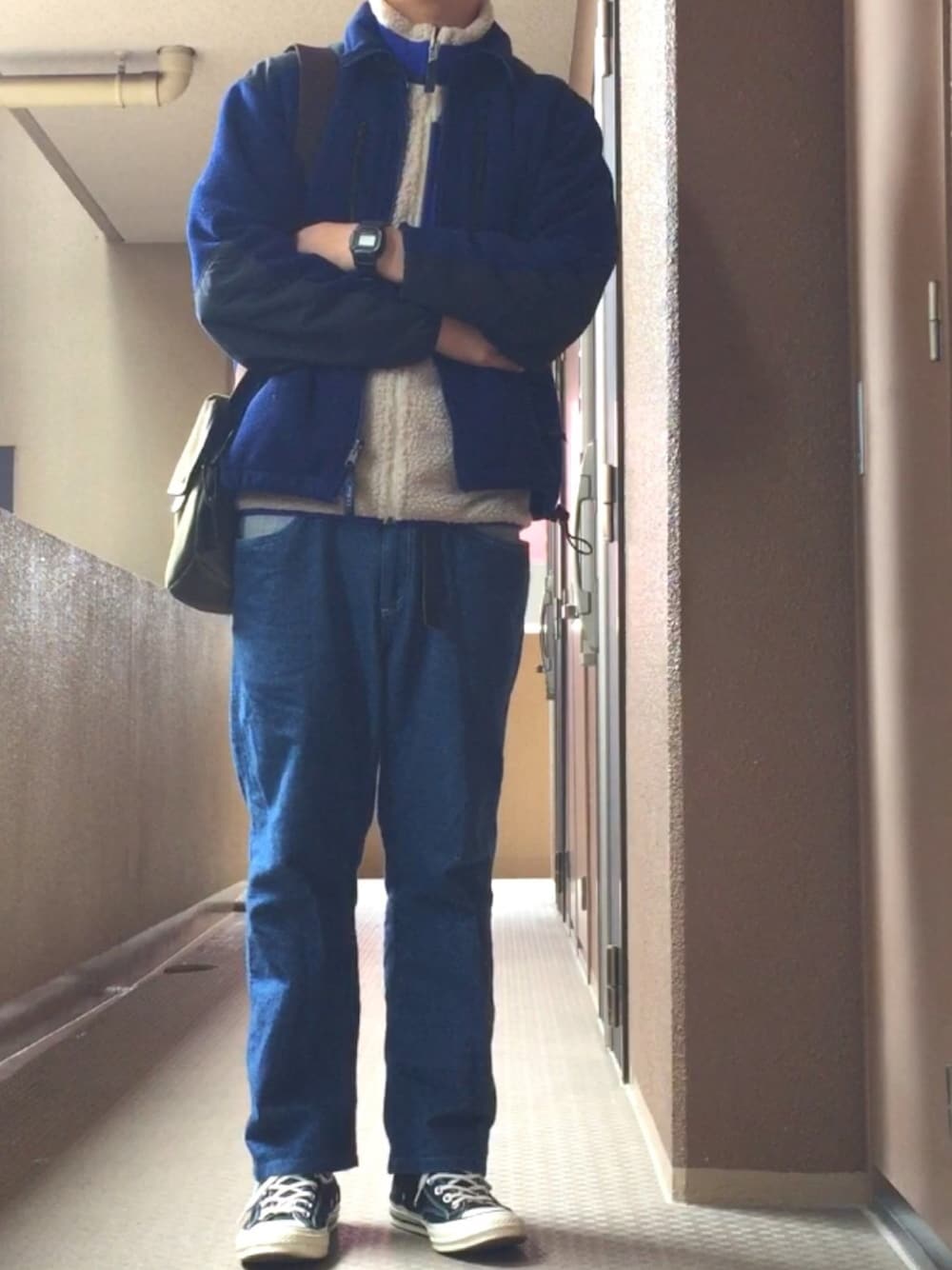 フリースオンフリースコーデです これならマウンパなくても越冬できそう