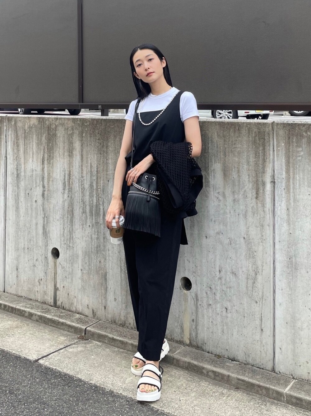 null.のセットアップにTシャツを合わせて 前をタックインして雰囲気を変えてみました🦨 真夏はサラッと1枚で肌見せで着たいな🌞