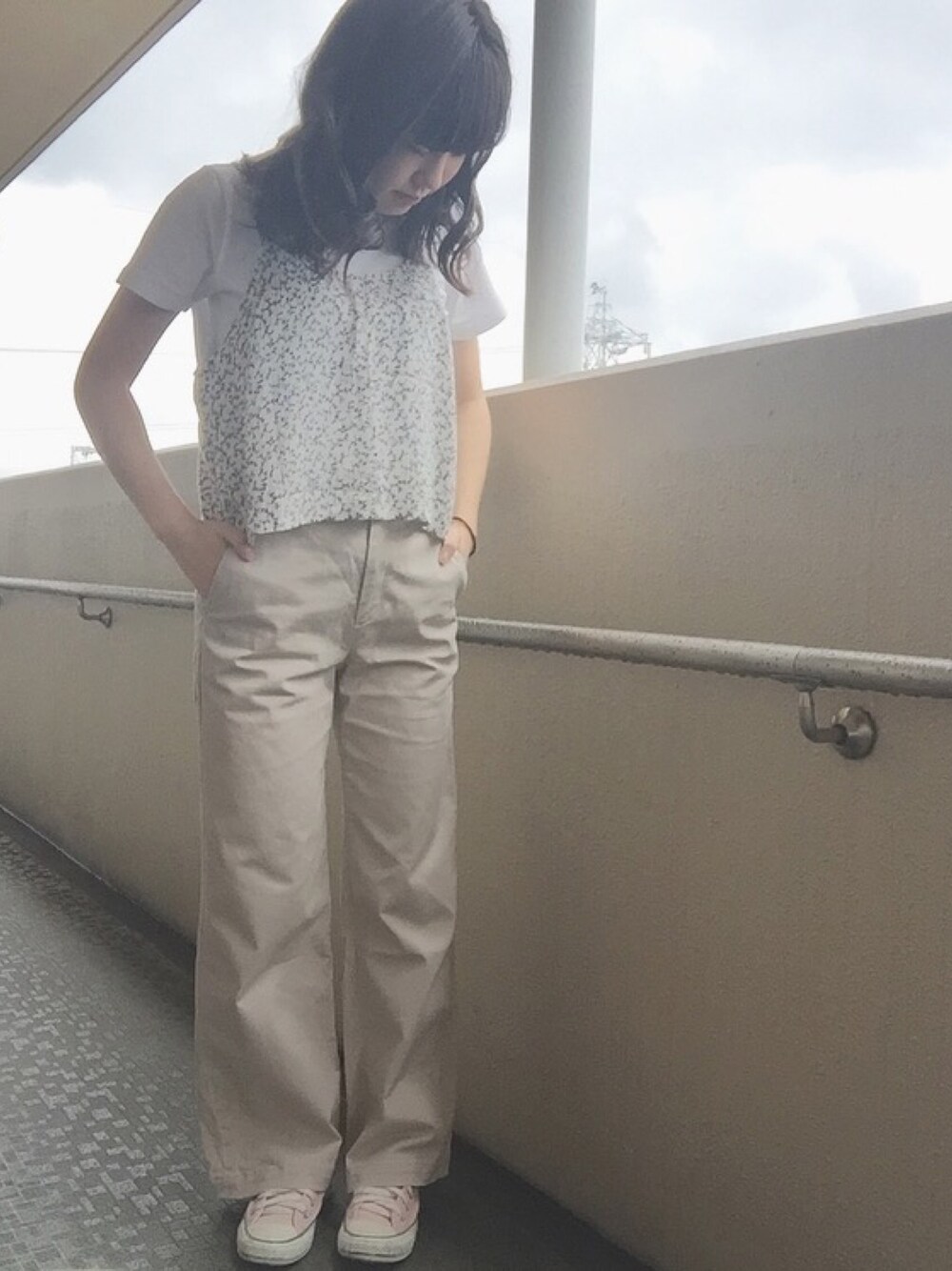 お気に入りのkastaneのキャミソール🌼 インナー変えれば1年中着れる◎ UNIQLOのチノパンは履きやすくて お気に入り ! 今日涼しくいい感じだな〜〜