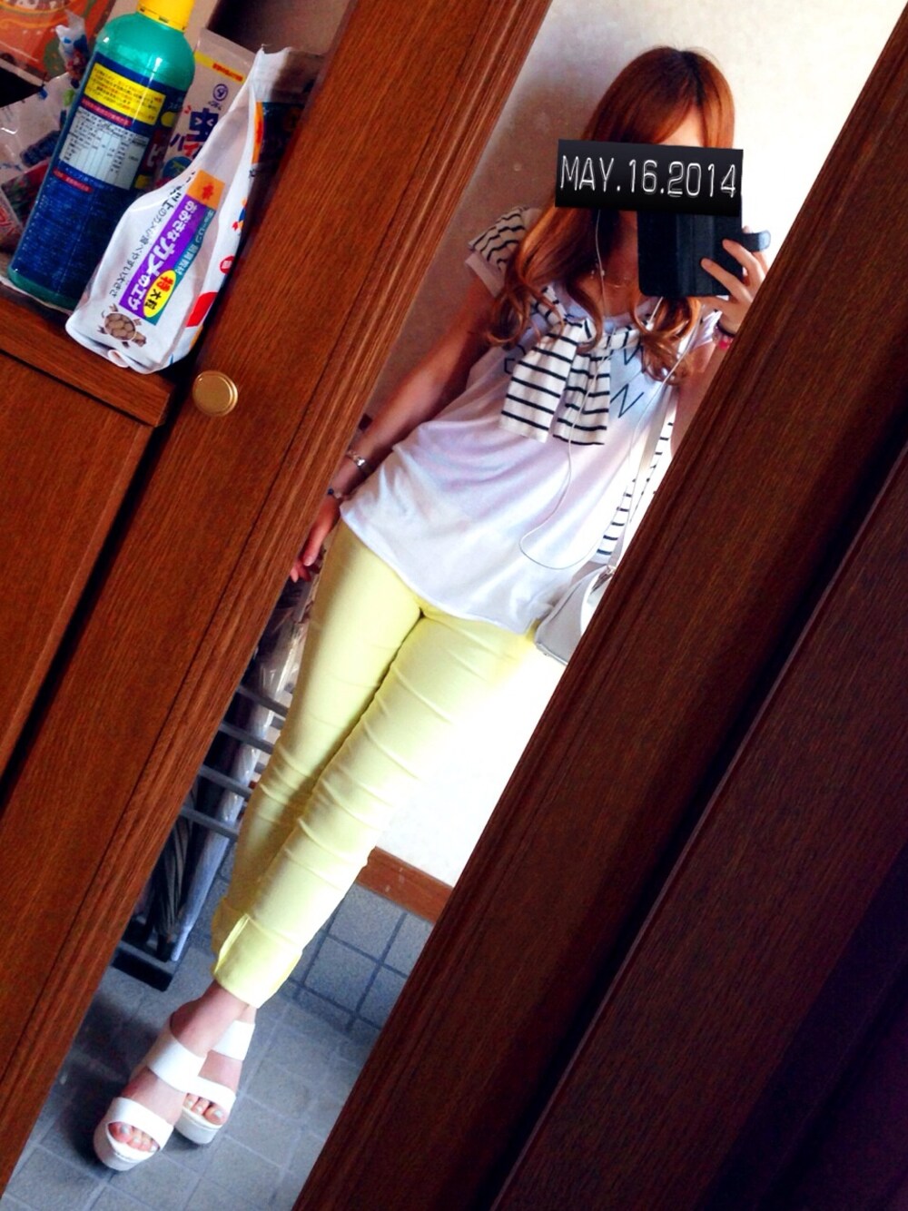 トップス ? ボーダーカーデ ? スキニー ? サンダル R&E バッグ EMODA