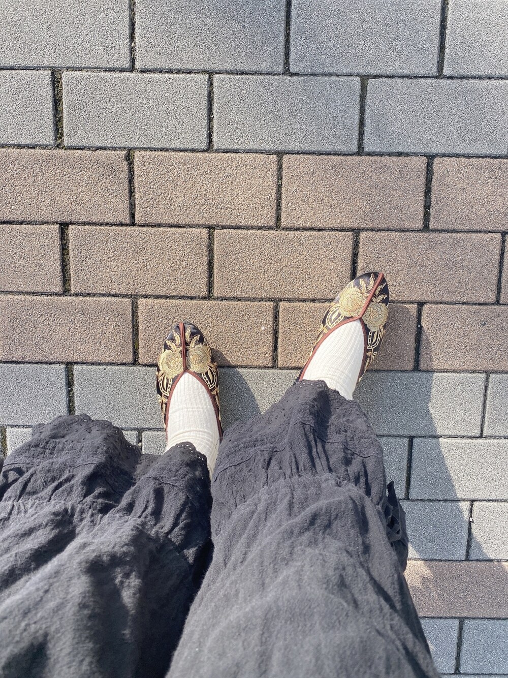 チャイナシューズ🌹 履きやすすぎて歩き回って足が痛くなった(笑) ちなみにわたしが履いてるのはLサイズで、足の大きさが24.5でちょうどいいかなと思うくらいです!! いまWEGOではSALE真っ最中でめちゃくちゃお得です👌✨ インスタもよかったら見てみてください😃 Instagram(__krn__wa)