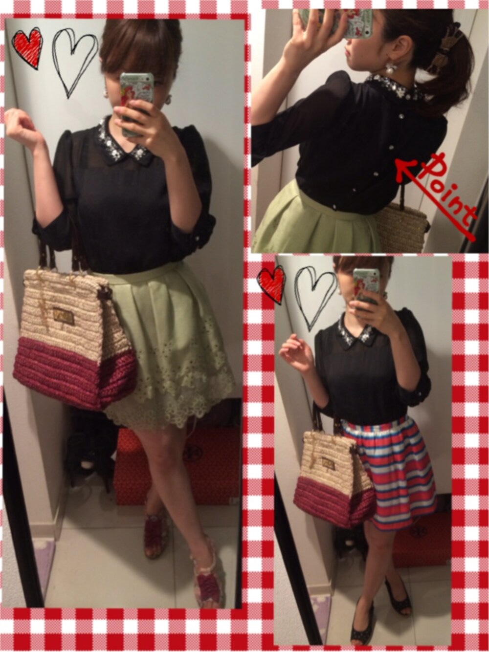 大好きなRirandtureでオールコーディネート♡ この襟ビジュートップスは一枚でおしゃれに着こなせるー♡ バックスタイルも抜けがない感じがお気に入り♡