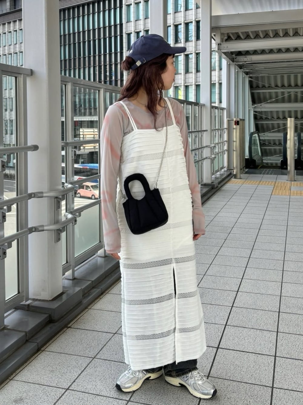 Kastane official(KastaneOnlineStore)のワンピース「【2サイズ展開】シアーフリルキャミワンピース」を使ったコーディネート