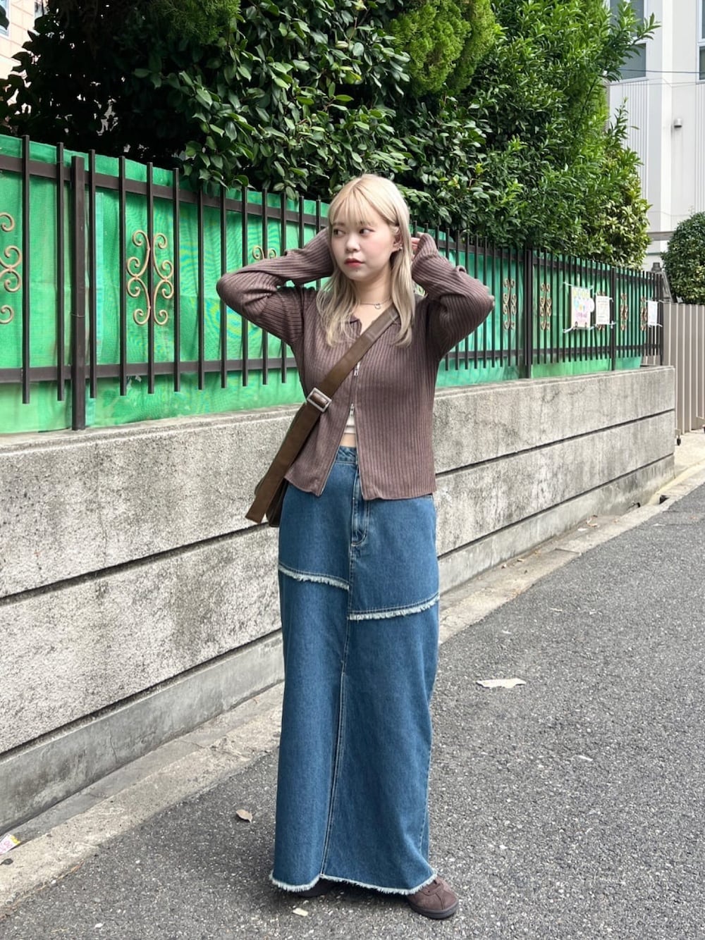 Kastane official(KastaneOnlineStore)のデニムスカート「【2サイズ展開】デニムロングスリットスカート」を使ったコーディネート