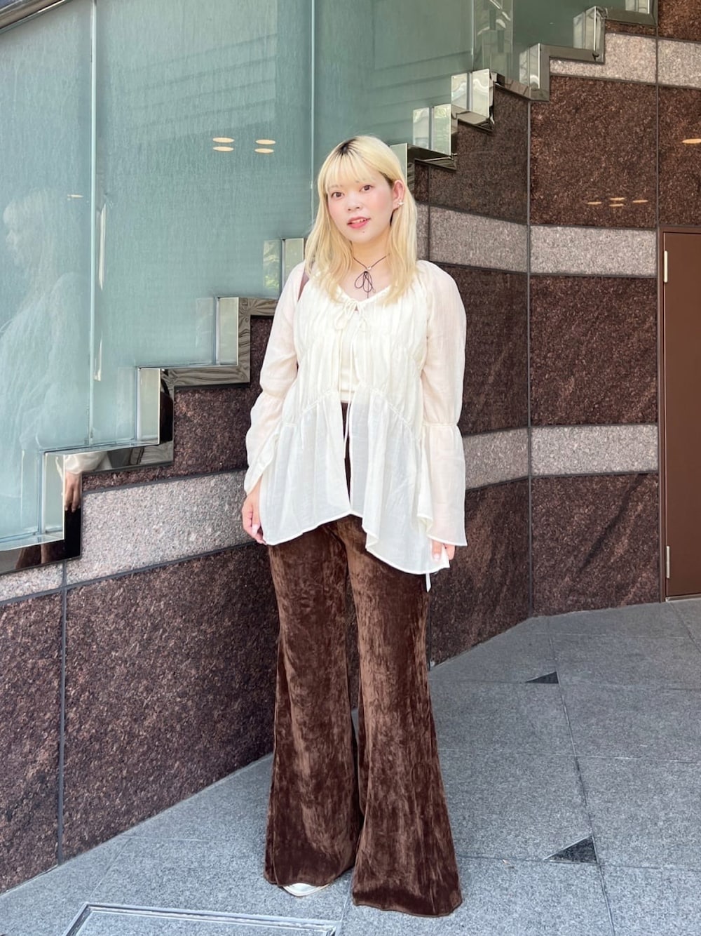 Kastane official(KastaneOnlineStore)のシャツ/ブラウス「【S.Lサイズ展開/前後2WAY】シャーリングシアーブラウス」を使ったコーディネート