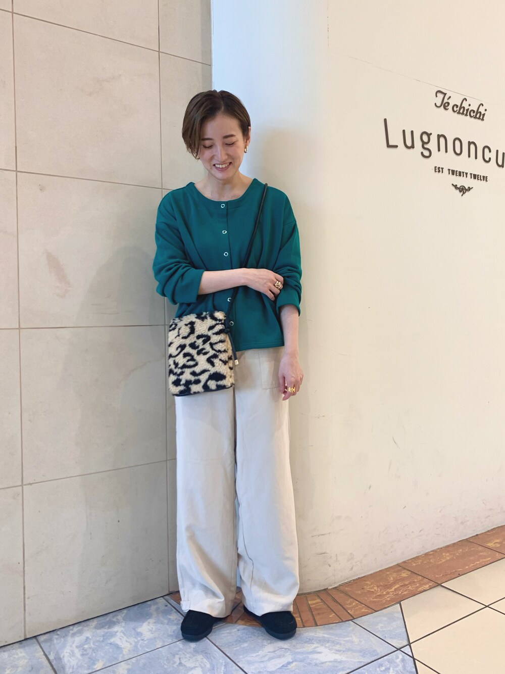 カスミのカーディガン/ボレロ「リングドット前後着裏毛カーディガン」を使ったコーディネート