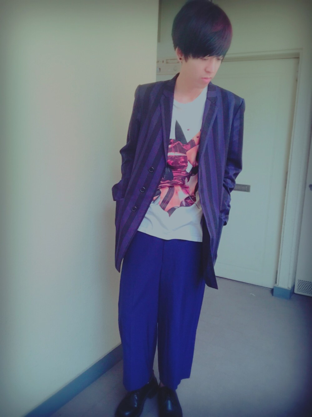 今日は2ヶ月ぶりに美容院へ😤 最近忙しくて行けなくて… 髪の毛をばっさり切りました! 髪の色は緑とピンクをメッシュで入れてもらいました😚 今日はお気に入りのジャケットとパンツを合わせました!! ジャケットは少し丈が長いからまたそこがいい! パンツのシルエットも大好きだ!、 最近ちょくちょく思うのがTシャツ欲しいな思った今日この頃です…