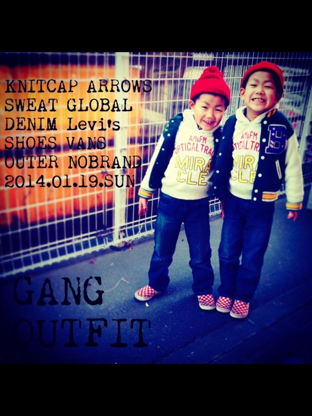 GLOBAL WORKLevi'sno brandUNITED ARROWS BLUE LABELVANSこの画像から似たアイテムを検索できます4251お気に入り (5)10MKSLさんへのコメントNO COMMENTコメントはスマートフォン用アプリからご利用できます着用アイテムGLOBAL WORKGLOBAL WORKパーカー (ベージュ系)パーカー探すZOZOTOWNで探すLevi'sLevi'sデニムパンツ (ブルー系)デニムパンツ探すZOZOTOWNで探すno brandno brandスタジャン (グリーン系)スタジャン探すZOZOTOWNで探すUNITED ARROWS BLUE LABELUNITED ARROWS BLUE LABELニットキャップ/ビーニー (レッド系)ニットキャップ/ビーニー探すZOZOTOWNで探すVANSVANSスニーカー (レッド系)スニーカー探すZOZOTOWNで探すMKSLのパーカーを使ったコーディネートSK8 DAYS!!!!コメントを表示2014.10.15着用ブランドGLOBAL WORKLevi'sno brandUNITED ARROWS BLUE LABELVANSタグ#スタジャン#スケボー#スウェット#VANS#双子コーデ#兄弟コーディネート#おそろいコーデモデル情報キッズ・130cm・8歳ボウズ似ているアイテムGLOBAL WORK × パーカーLevi's × デニムパンツno brand × スタジャンUNITED ARROWS BLUE LABEL × ニットキャップ/ビーニーVANS × スニーカーMKSL@kasumin2525 / 160cm / WOMEN / ベリーショートヘアー0コーディネート0フォロワー注目のコーディネートアプリでもっと見るもっと見る