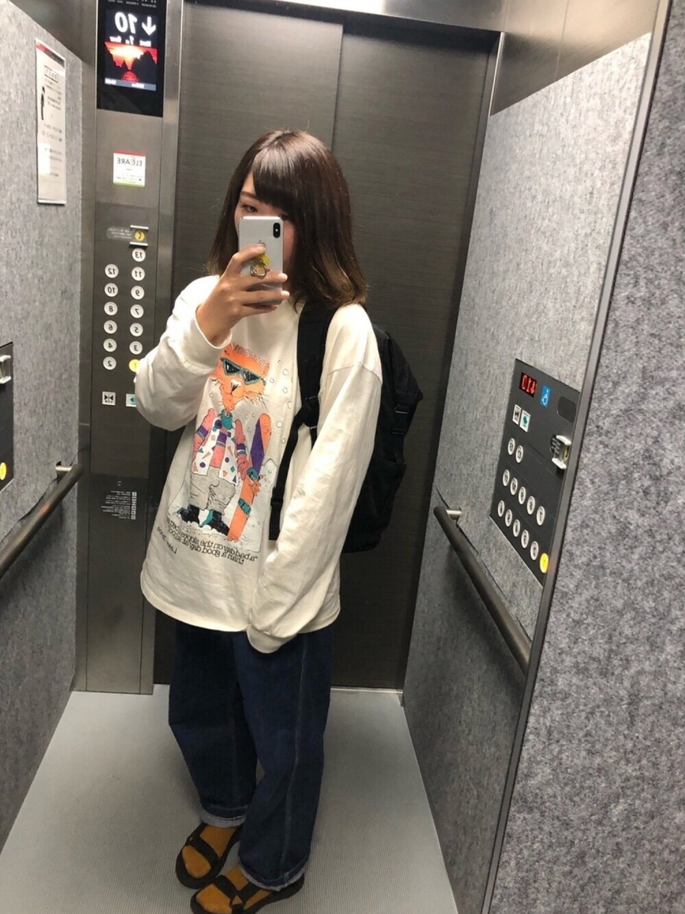 今日からまた仕事行きます! 秋服まだまだきれる嬉しい🥰 ロンTタグ付けしたけど、メルカリで買ったからほんまにブランドあっとるんか謎。