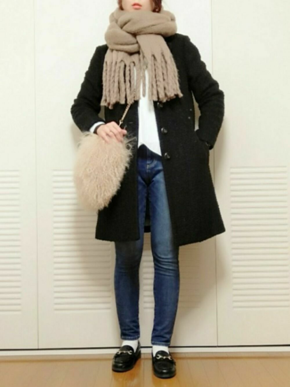 ベーシックに〜 小物で遊ぶ 何年か前のgroveのチェスター、ブークレ素材だから黒でも可愛くてずっと着ちゃう UNITED TOKYOの白シャツがかわいいので今度中身上げます