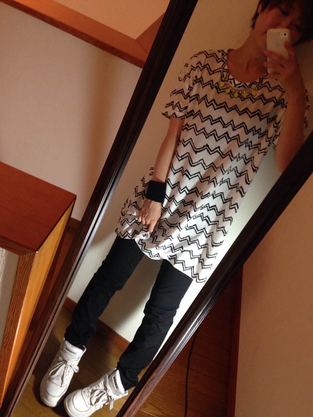 かたじゅんのTシャツ/カットソー「びじゅう付き🌊柄ロングTシャツ」を使ったコーディネート