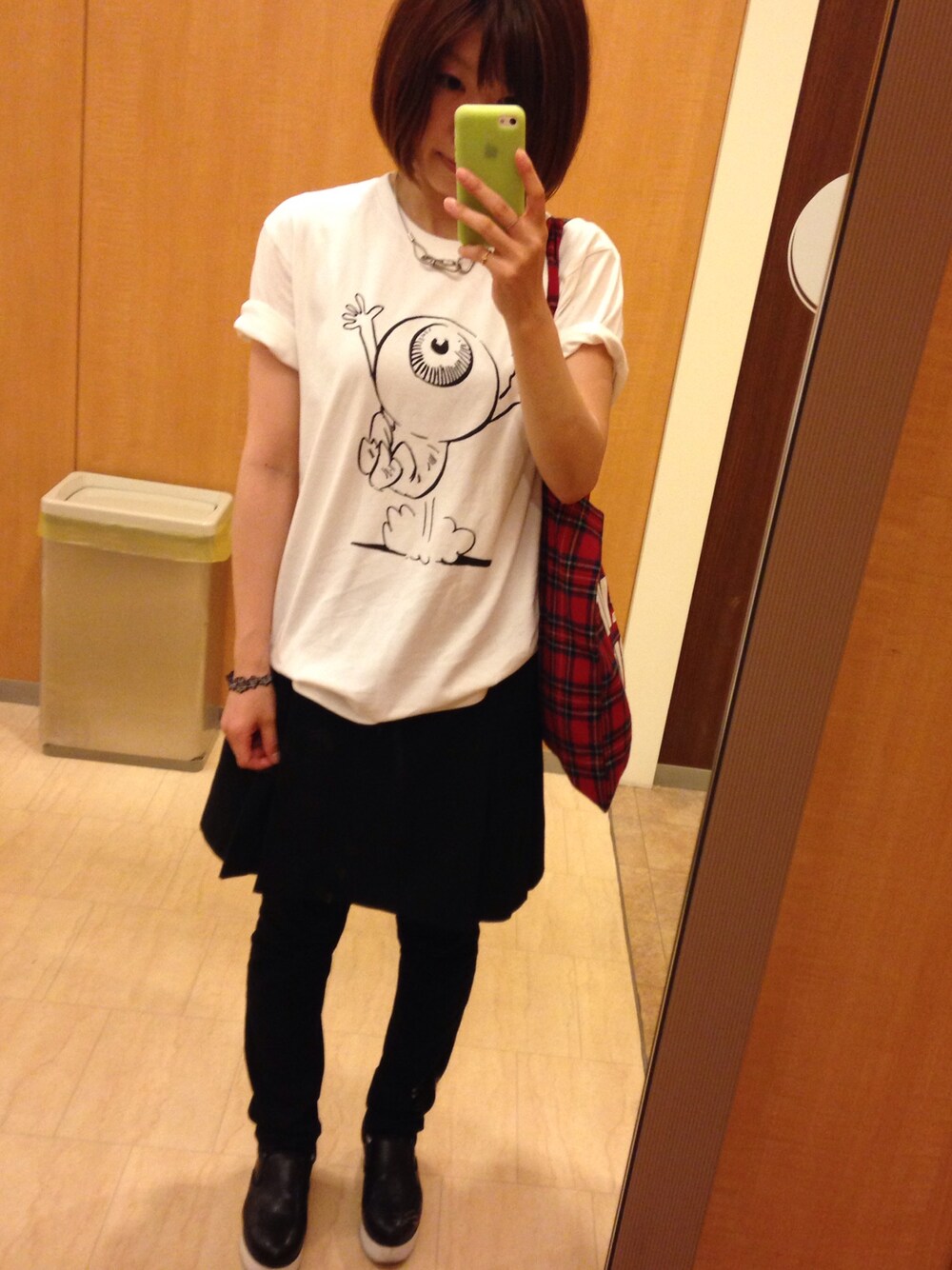 かたじゅんのトートバッグ「【CASUAL】チェック柄トート」を使ったコーディネート