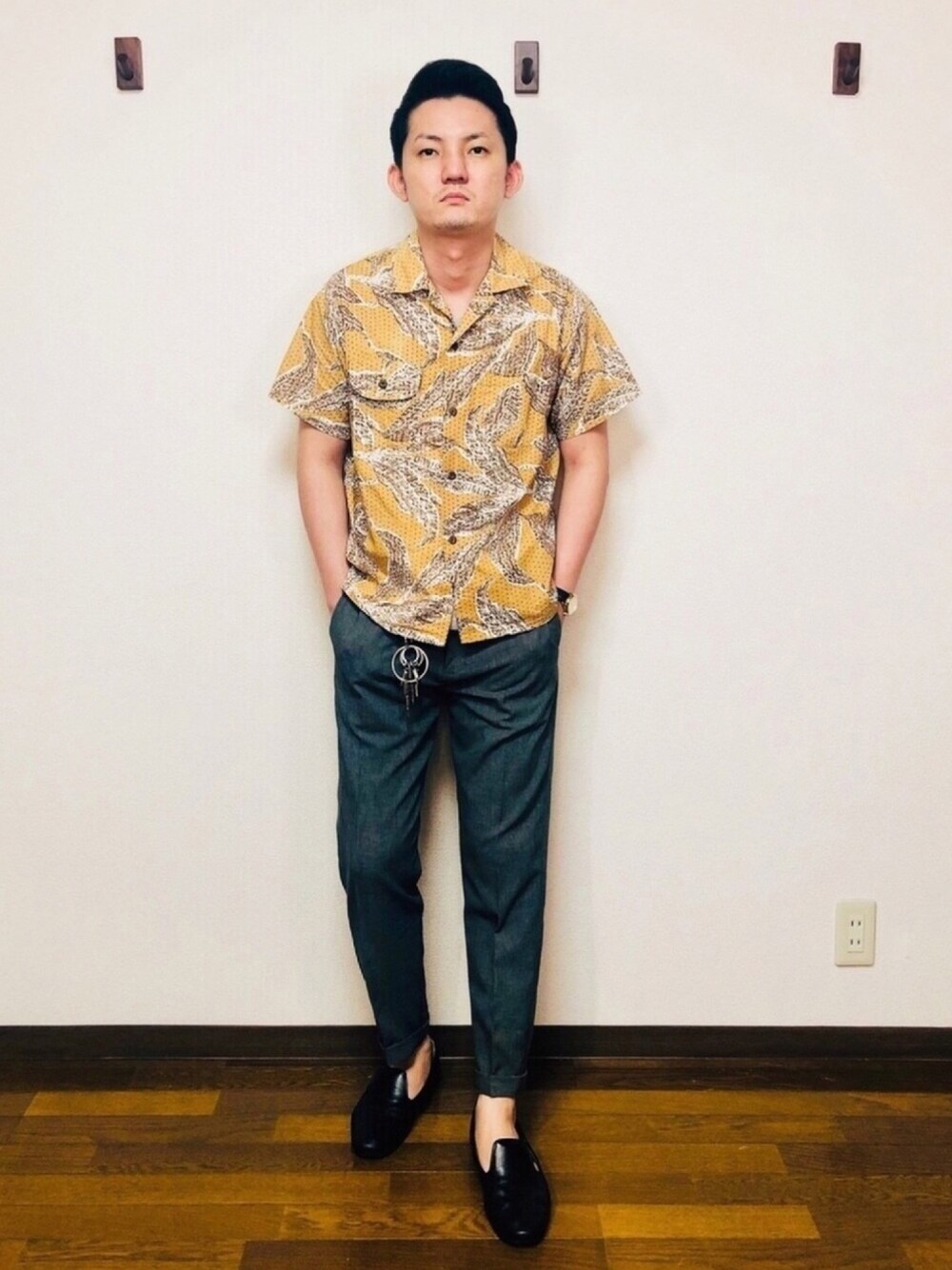 ご覧いただきありがとうございます😊 今日はキレイめアロハコーデ。 マスタードカラーとグレーの組み合わせは割と好きかも。 顔が怖くてチンピラに見えるかもしれませんが、ただ撮影に慣れてないだけなので大目に見てください。笑 いいねやフォローよろしくお願いします!