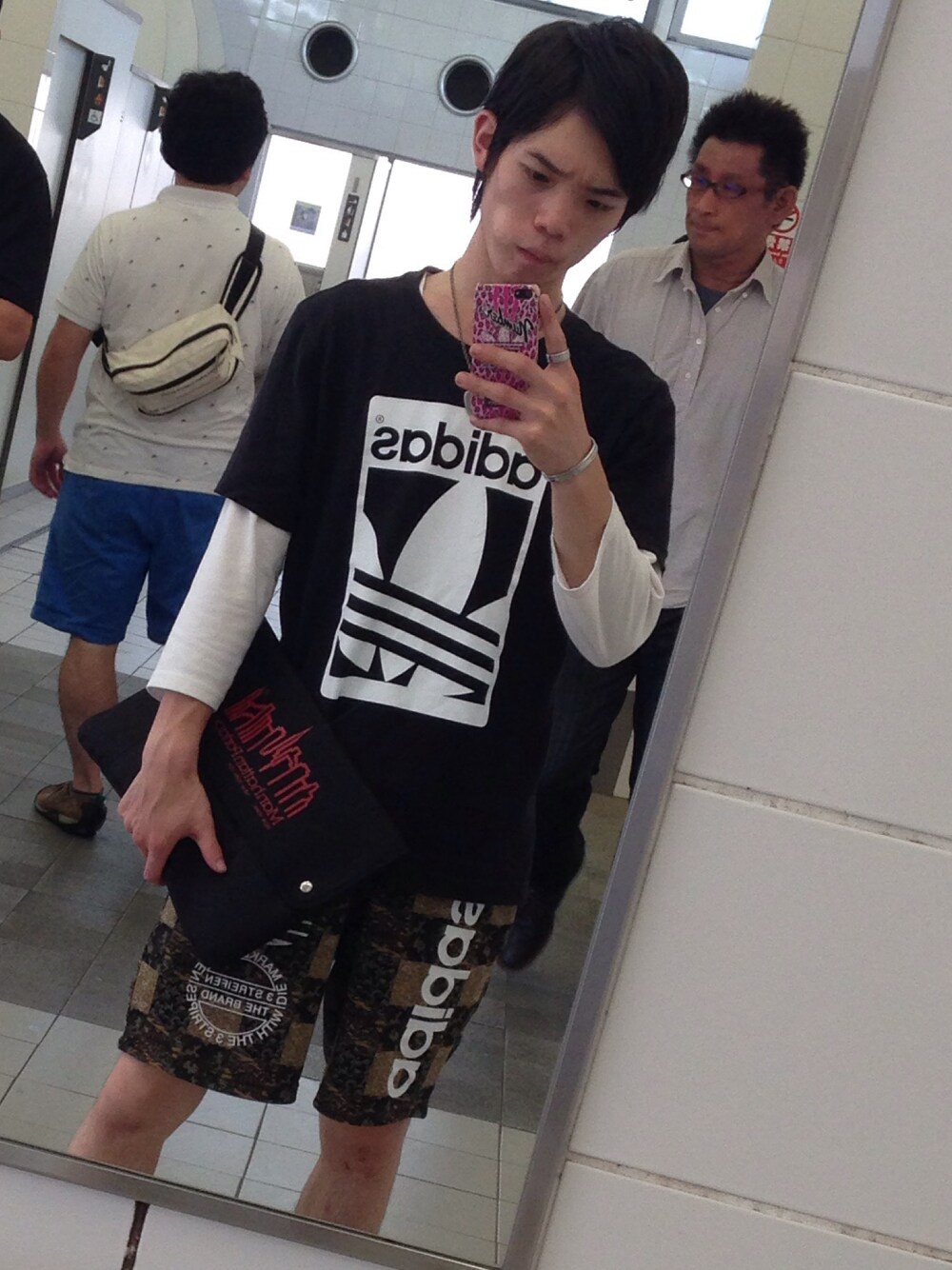 全身adidasコーデ 夏らしく派手に!
