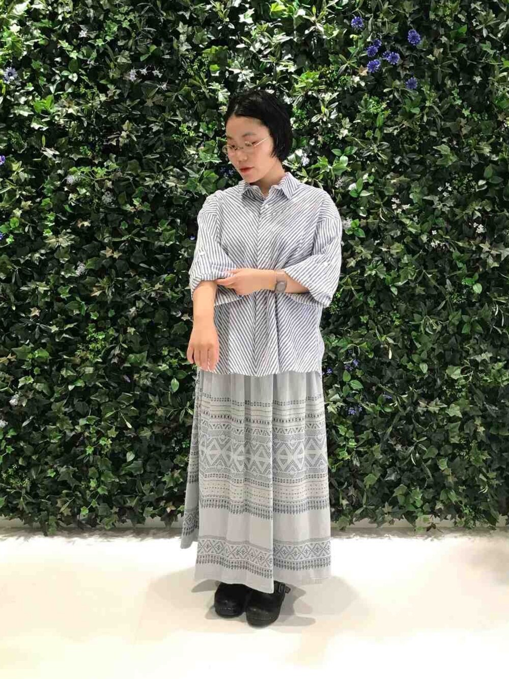 ブルーの中でもくすんだブルーなら、まだまだ着られる! 柄×柄も素材が上質ならいやらしくなりません。