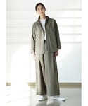 渋めの色を明るく着こなせる、クリーンな色味の白Tシャツがポイント。 裁断の際に捨てる余分な生地をパターンに組込み再利用するデザインも素敵。 思い切りロング丈のコートは身幅すっきりめのため、 縦ラインを強調した綺麗なシルエットにに纏めてくれます。