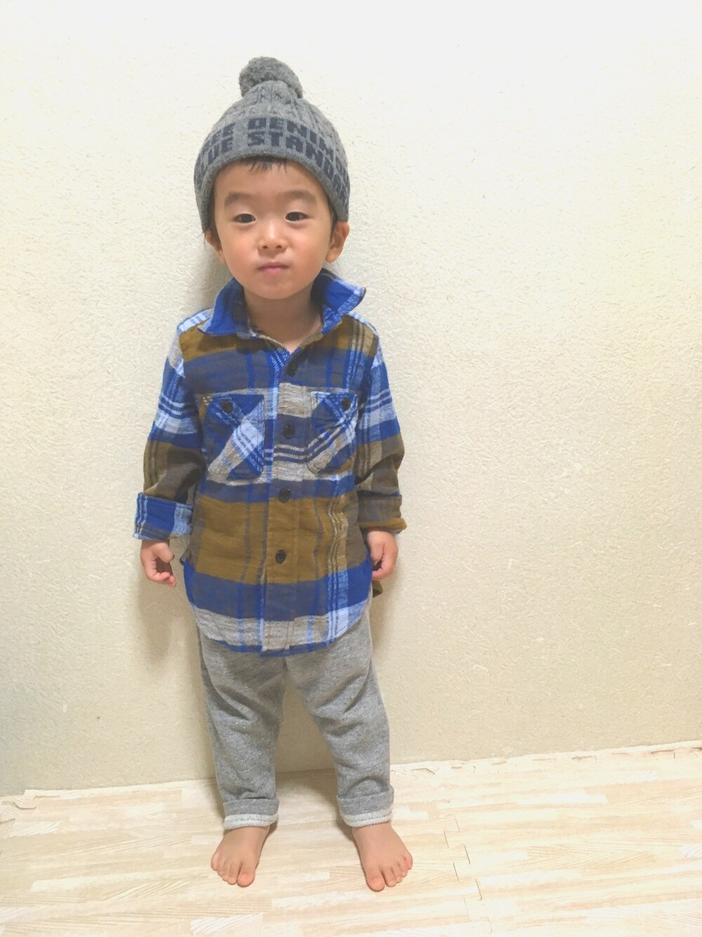 やっぱり息子はグレーが◎ 後ろのポケットが最高にかわいい🐭❤️ 茶ベースのネルシャツも万能アイテム!!