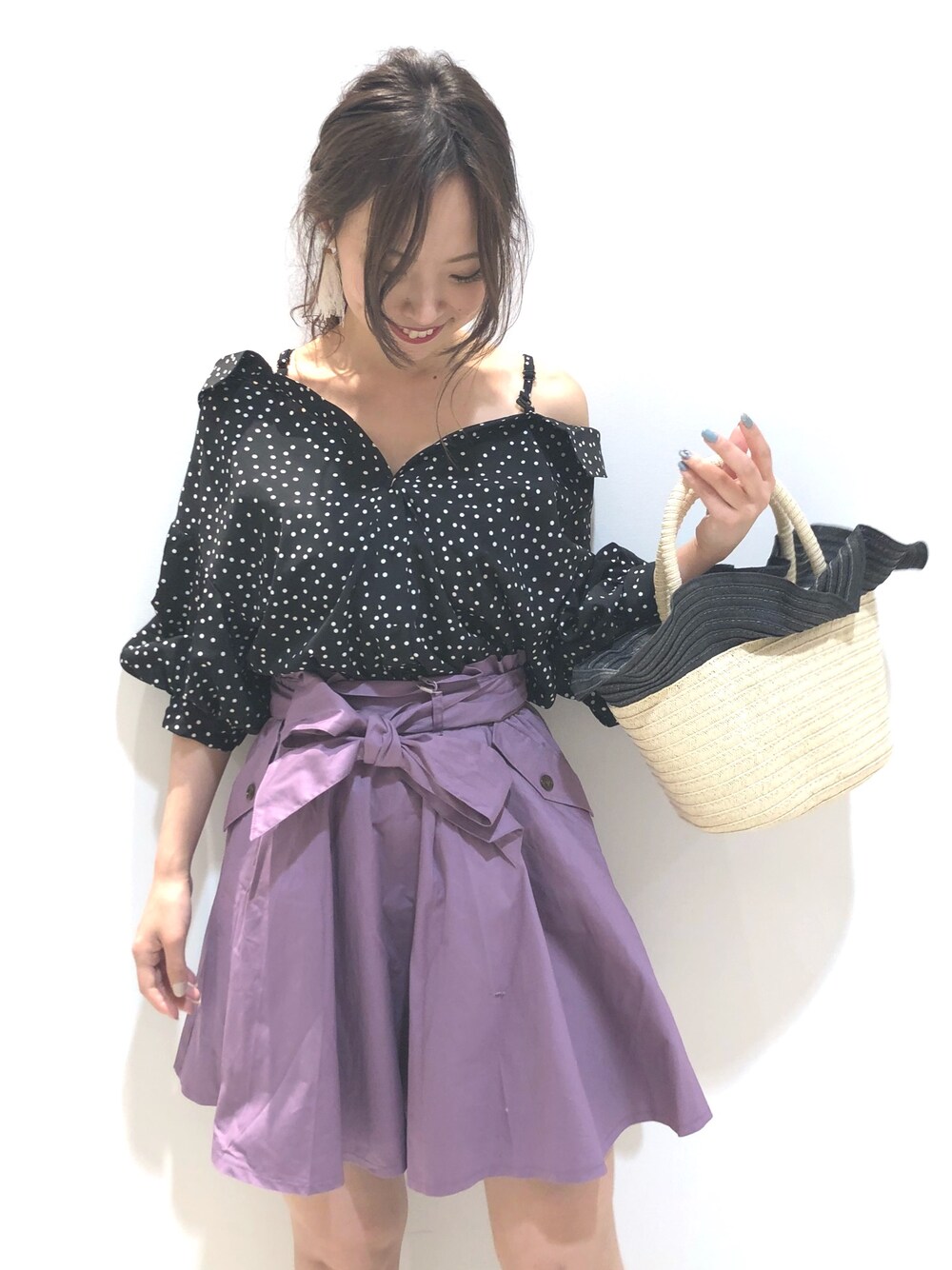 ドットのトップスにはカラーボトムを 合わせてみるのもアリ🙆♀️❤️ Instagramのストーリーに 着た時のシルエットや 横から見た感じを載せてるので 気になって下さった方はぜひ見てみて下さい💕💕 @miyaxx1217