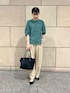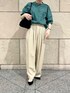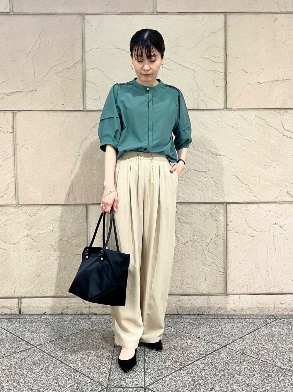リラクシーなパンツが入荷しました!サイズは36ですが、ウエストがゴムで楽でした。丈も私の身長でぴったりとやや長めです。 人気のブラウスを合わせました◎肘がしっかり入る袖丈でした。また鮮やかなグリーンで、爽やかな印象に!