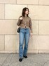 【カーディガン】 ボタンがブローチのようで可愛いカーディガン!ふわふわ感がたまらないニットはショート丈でスカートやワンピースにも相性が良さそうです! 【パンツ】 綺麗なシルエットのデニムはアッパーハイツのものです。デザインによってゆったりする形もありますが、こちらは割とフィット感ありでした。