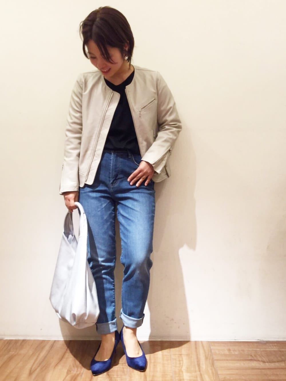 chia(La boutique BonBon official)のイヤリング「一粒パールイヤリング」を使ったコーディネート