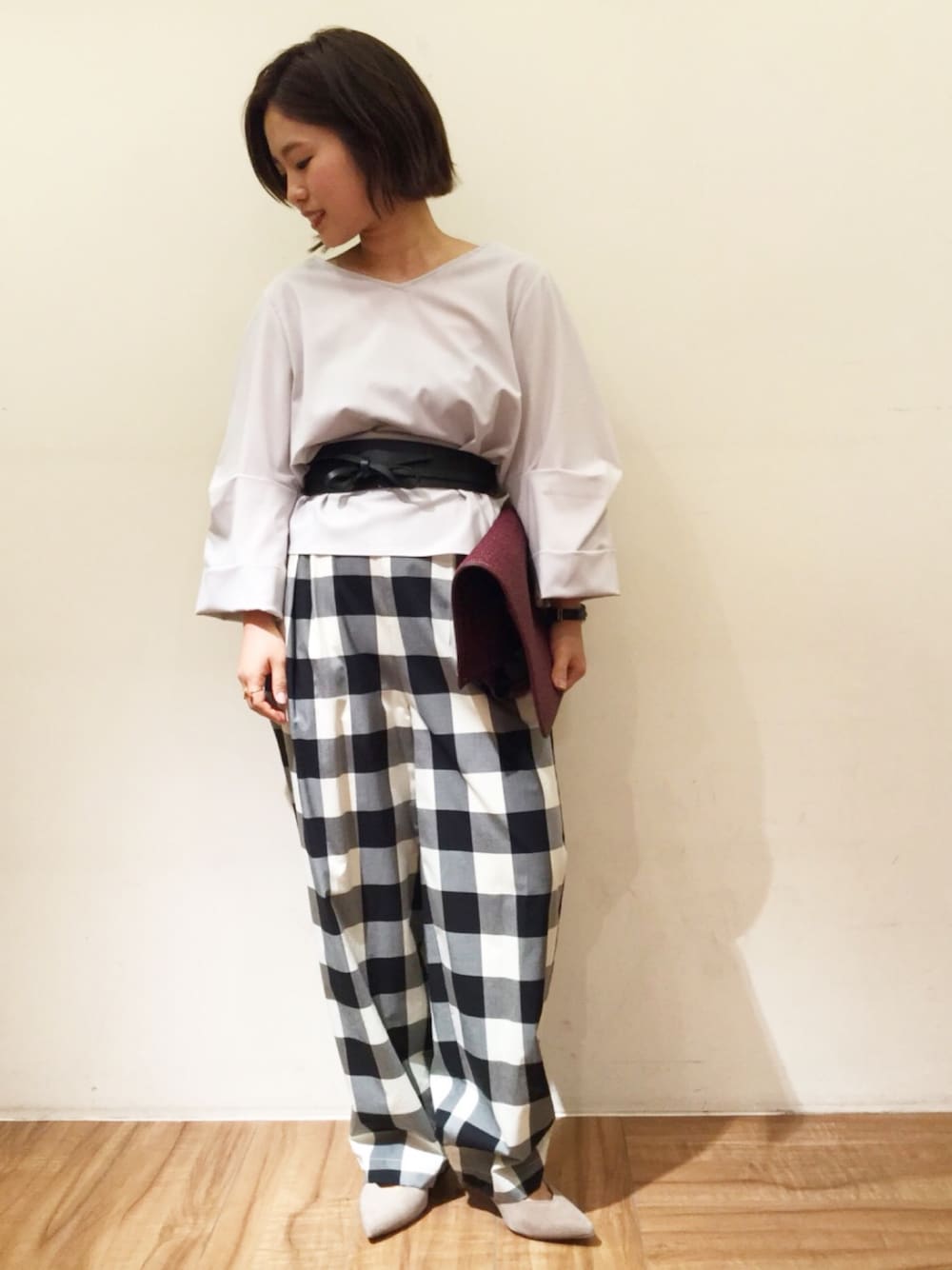 大きめのブロックチェックは今年のトレンド😄 シルエットもひとくせあるパンツでおしゃれ感満載ですよ💛