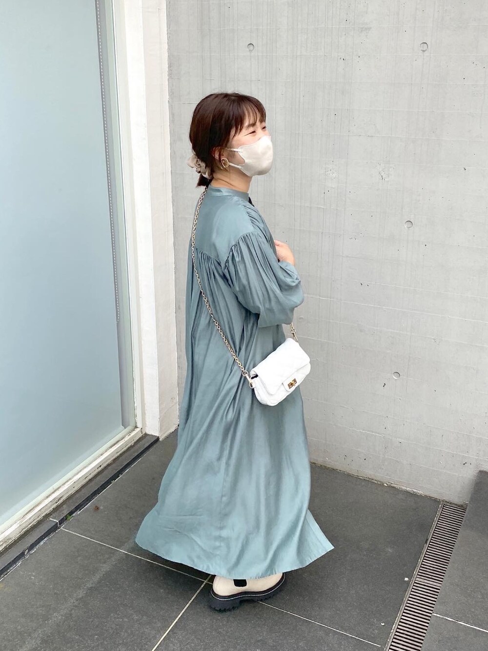 chia(La boutique BonBon official)のワンピース「後ろ姿も可愛い バックギャザーボリュームシャツワンピース」を使ったコーディネート