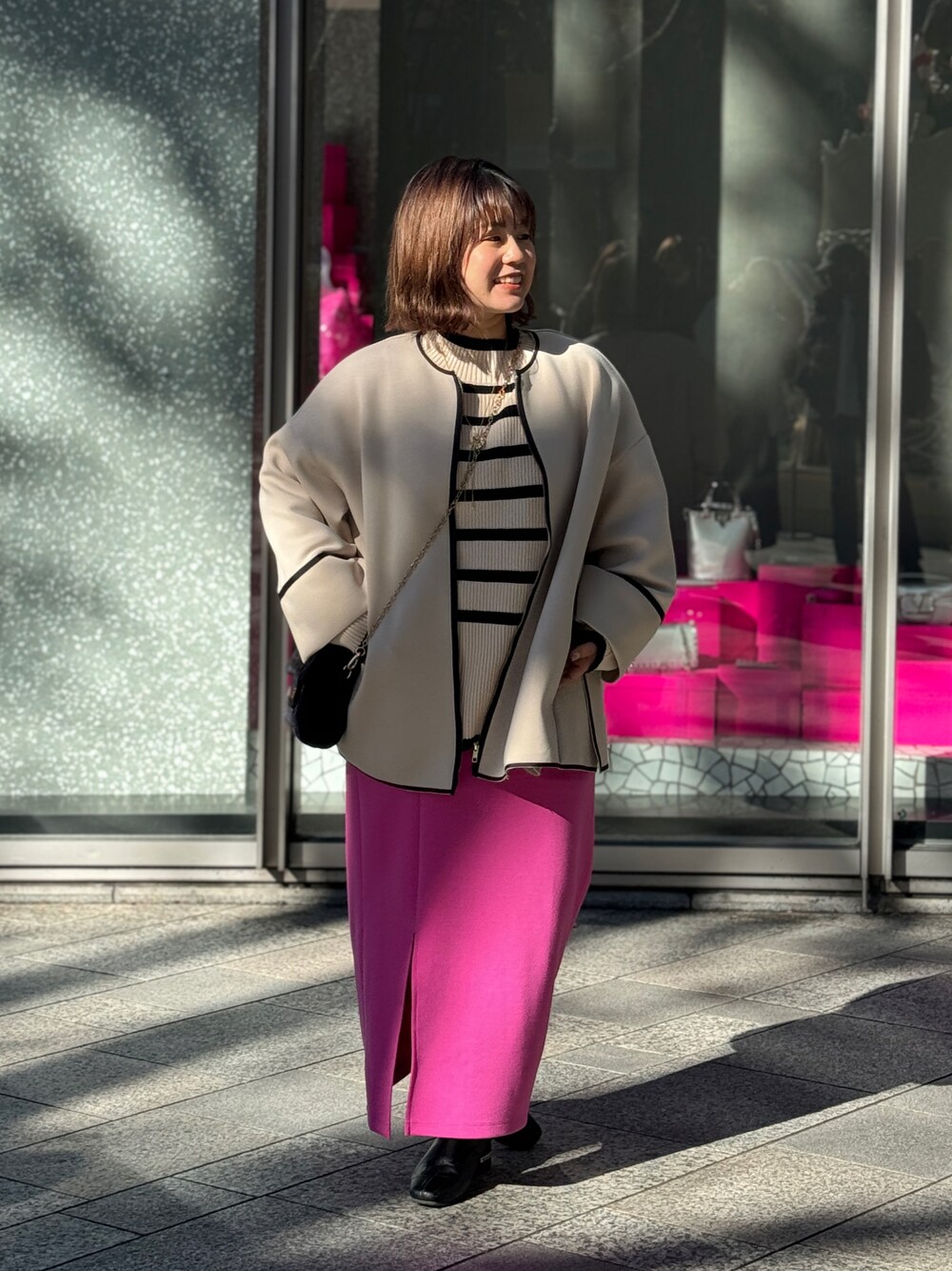 chia(La boutique BonBon official)のニット/セーター「【12/8(金) 12:00~予約開始!】《予約》片畦サイドZIPボーダーニット」を使ったコーディネート