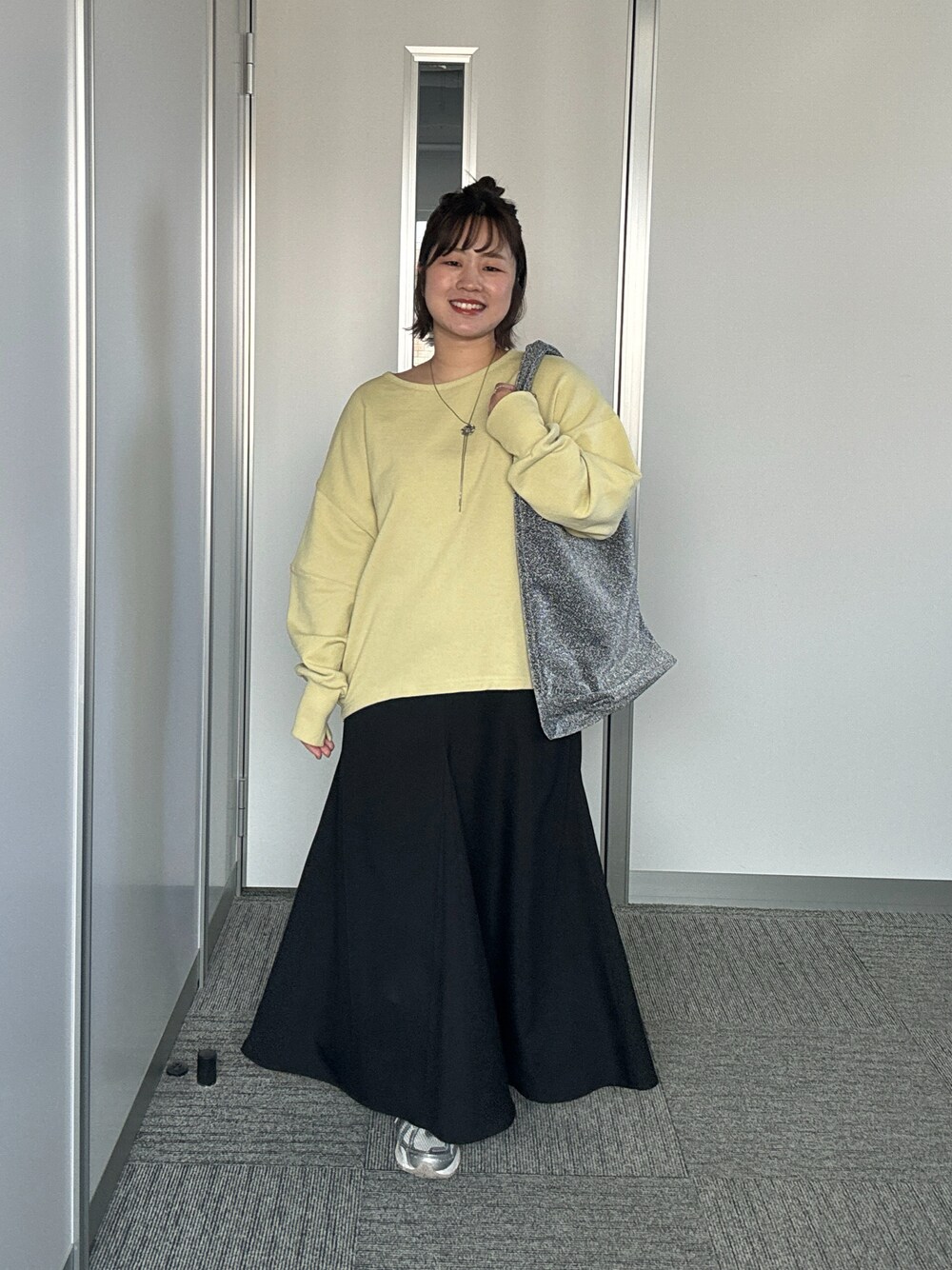 chia(La boutique BonBon official)のバッグ「《予約》cache cache/ラメワンポイント刺繍トート」を使ったコーディネート