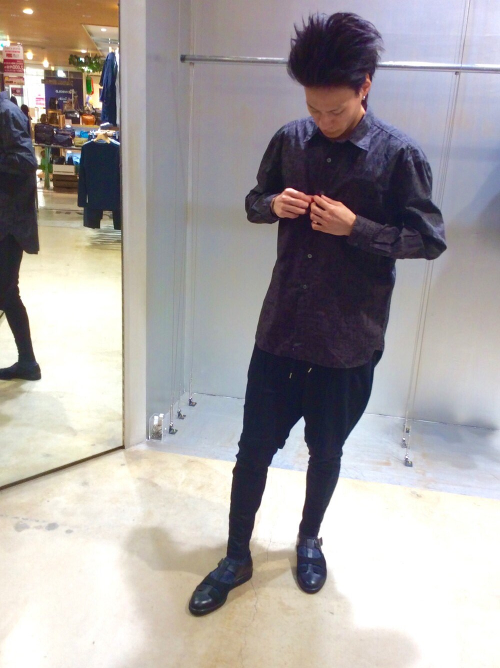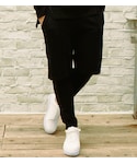 ブラックでまとめたレイヤードコーディネート。シルエットに変化をつけリブランディングしたハムネットらしさを強調。レイヤードパンツはトップスの表情を大きく変えてくれる1本は持っておきたいアイテム。