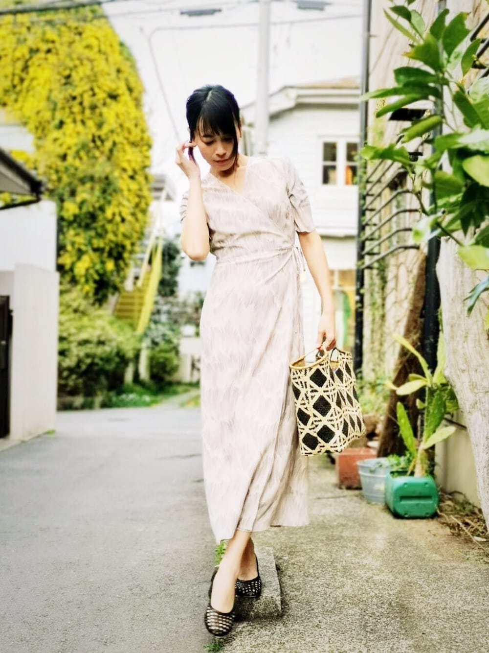Claneのワンピース、Banago のかごバッグ😊