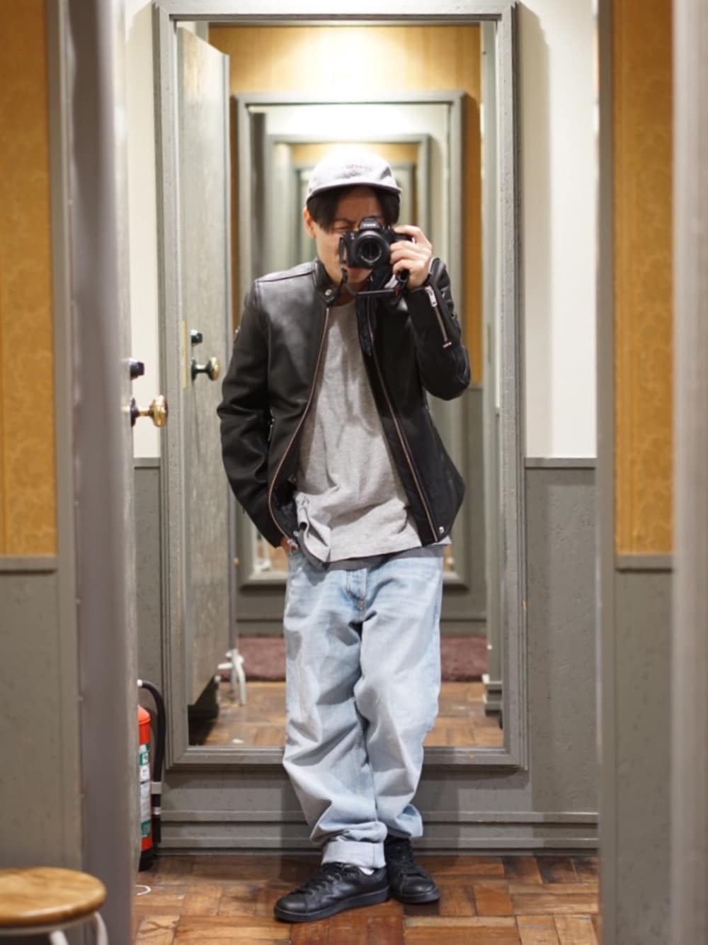KATO(DIESEL 柏)のライダースジャケット「メンズ ジャケット レザージャケット」を使ったコーディネート
