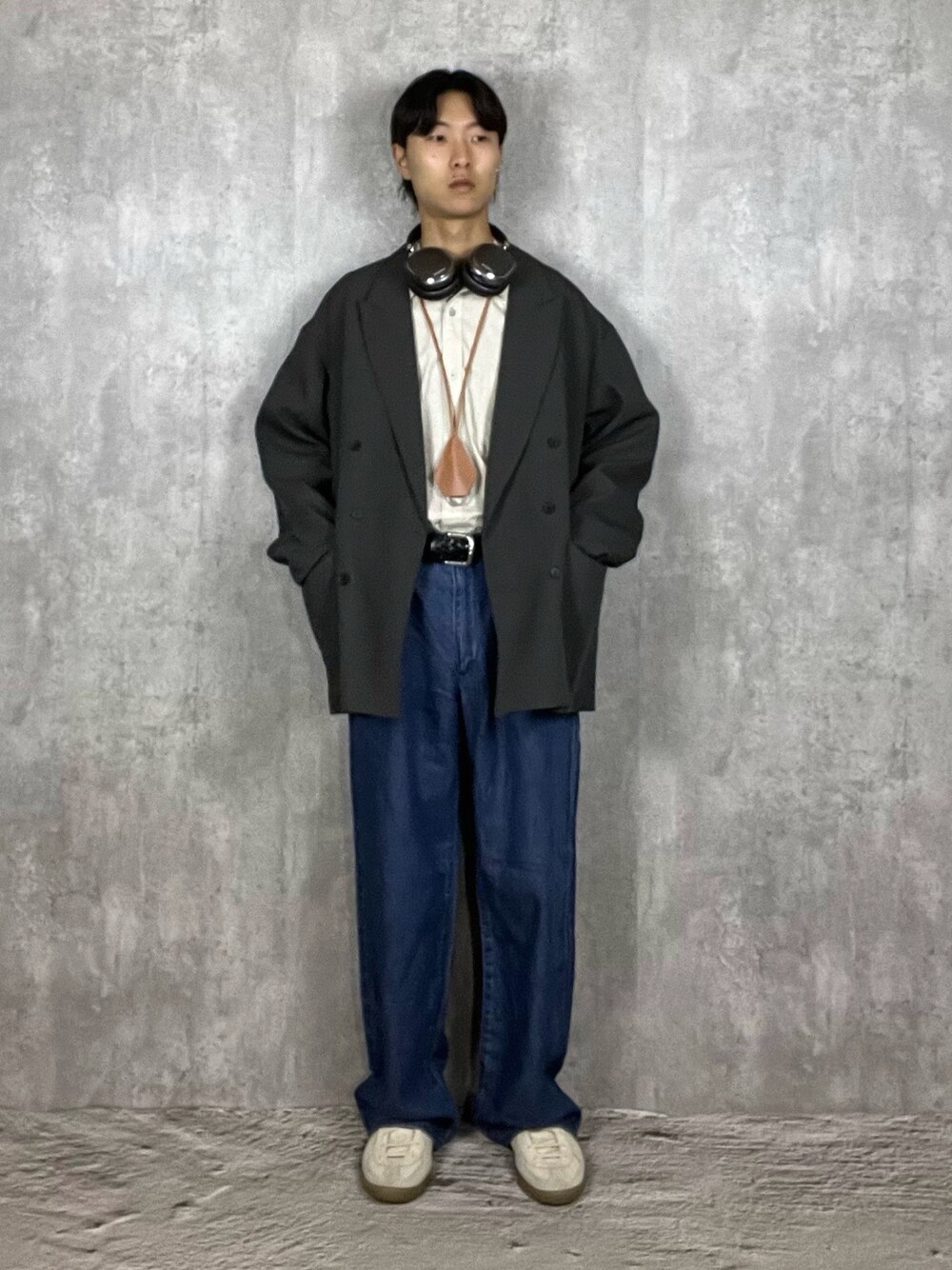 【小物でオシャレ見え!王道のジャケット×デニムスタイル】 テーラードジャケット×デニムはきれいめカジュアルのバランスがいい間違いない組み合わせです! キーネックレスとヘッドホンでアクセントを足してシンプル過ぎない小慣れた印象にしています。 タックインで低身長でも脚長に見せられます。 シャツとスニーカーを生成り色に合わせて大人っぽく清潔感のある印象にまとめています。 いつも❤️いいね➕お気に入り、素敵なフォルダインありがとうございます。とても励みになっています! Instagramもやっています! 是非フォローお願いします!🙇