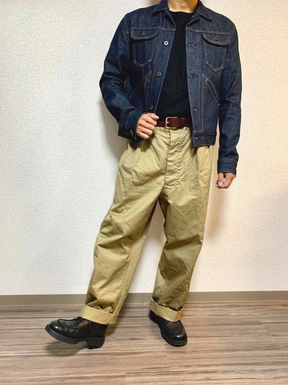 ショート丈のデニムジャケットの着こなしが難しい😱 今日からは俺はみたいなコーデになってしまいました🕶笑