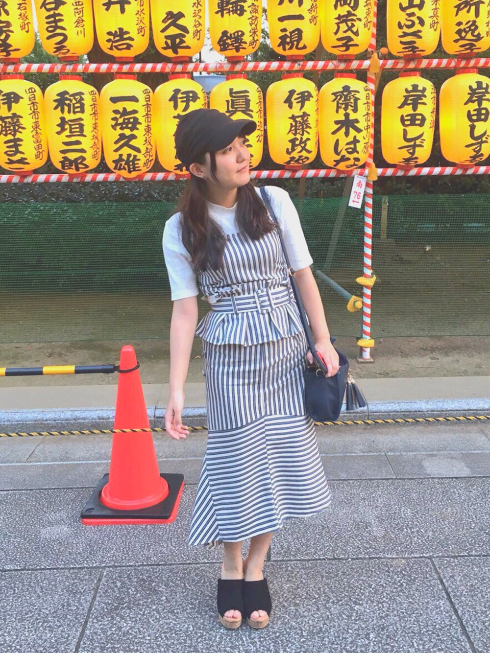 かとう みゆのキャミソール「フリルベルト付ストライプビスチェ」を使ったコーディネート